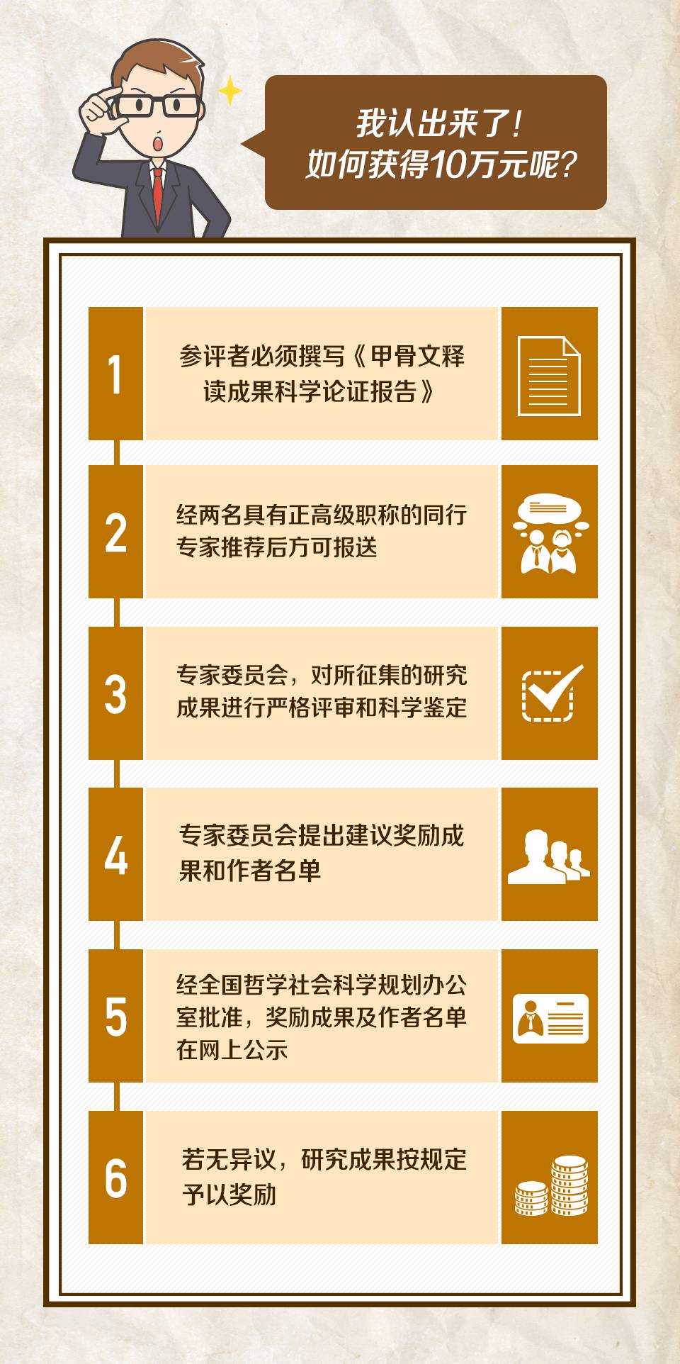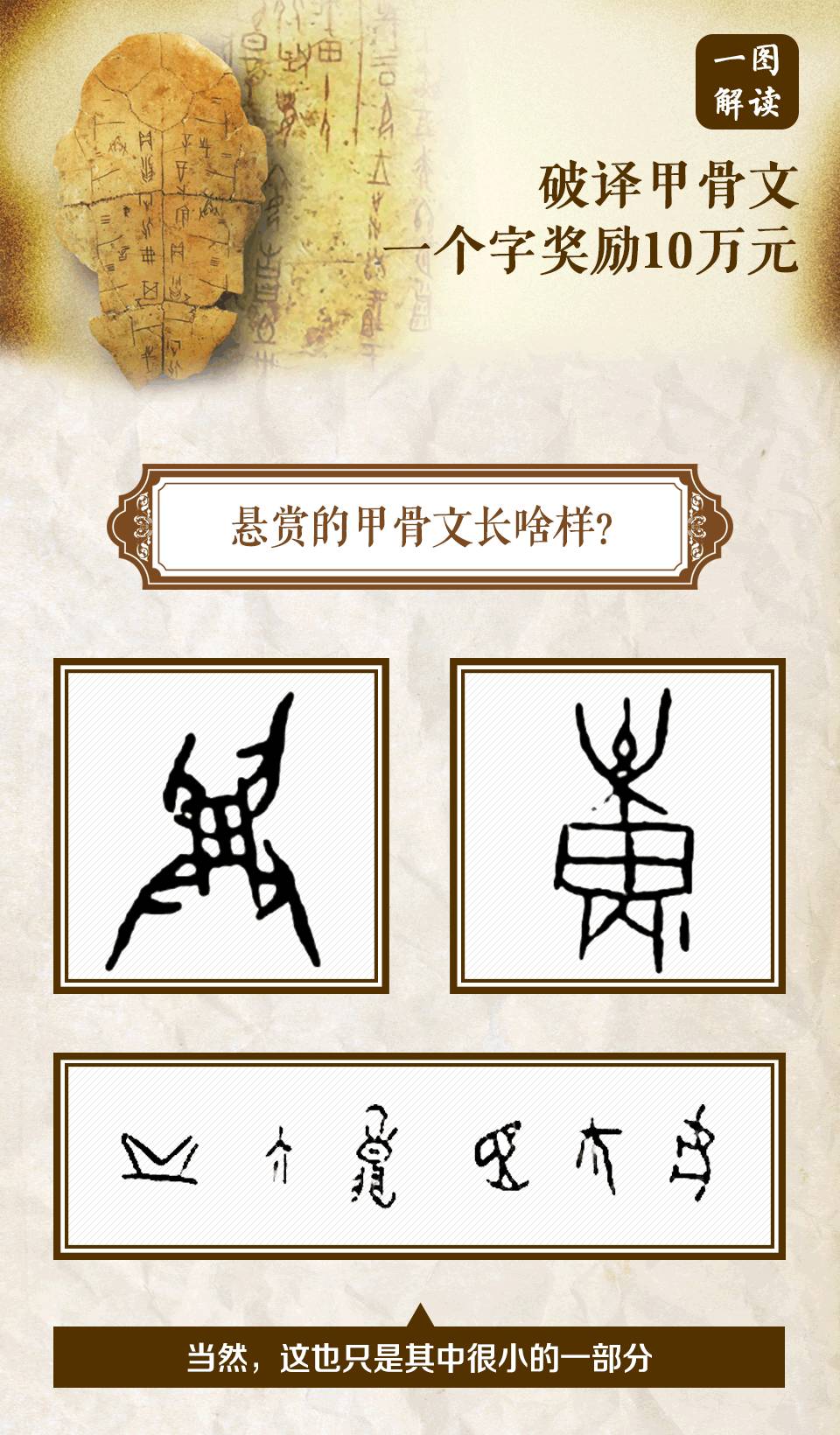破译未释读的甲骨文并经专家委员会鉴定通过的研究成果,单字奖励10万元;