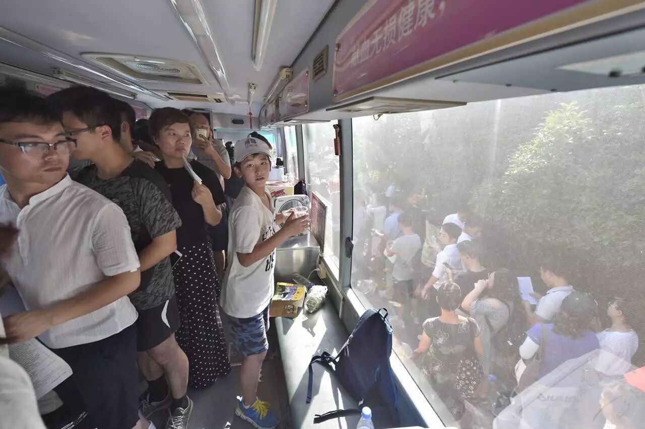 现场维护秩序的志愿者告诉记者:“今天(21日)前来献血的市民数量比前几天激增了至少七八倍,不少市民下班后赶来,所以晚上人越来越多。由于这辆献血车已‘超负荷’,无法接待更多的献血者,相关方面已安排其他献血点派车到现场,转移部分市民前去献血。”