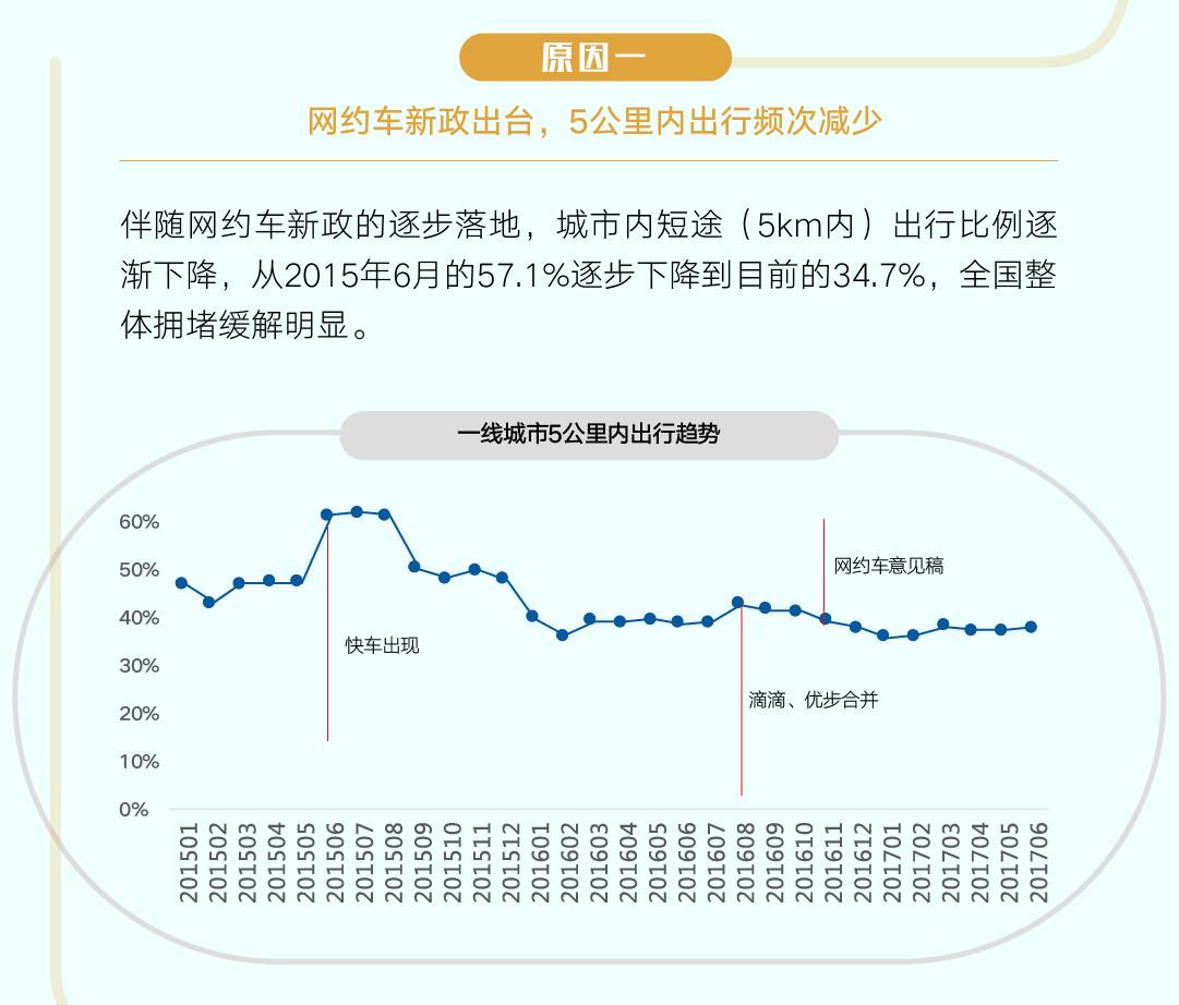 原因一:网约车新政作用明显5公里内驾车出行比例下降