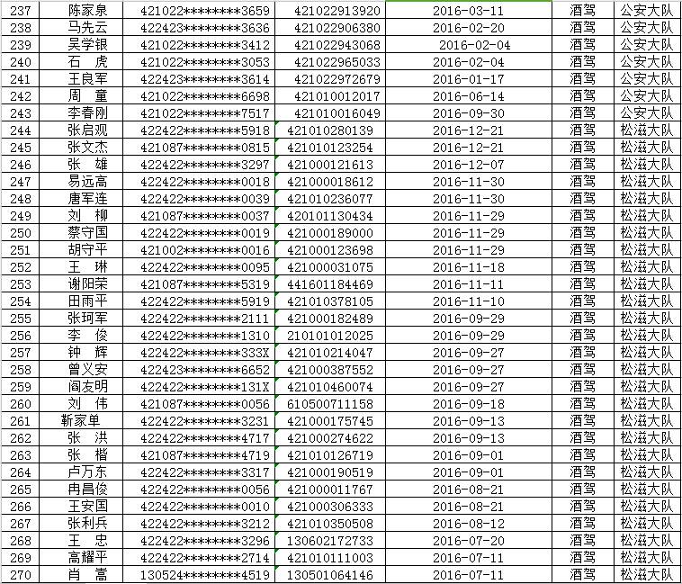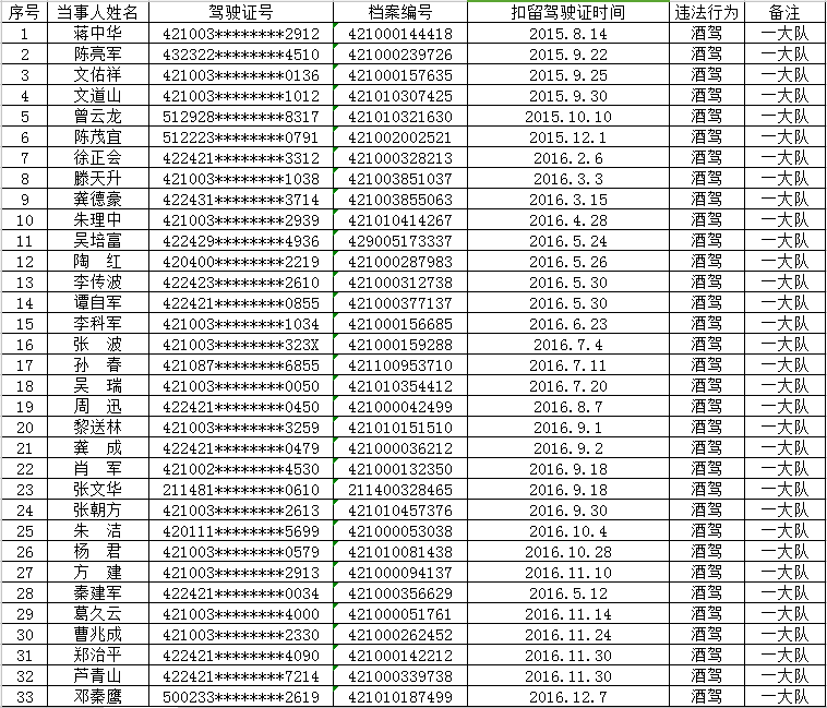 下列机动车驾驶人发生道路交通安全违法行为被本机关依法扣留驾驶证后,超过15日未接受处理,根据《中华人民共和国道路交通安全法》第一百一十条第二款规定,本机关拟作出吊销机动车驾驶证的处罚。