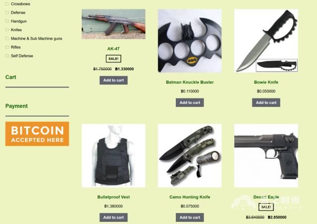 ▲暗网截图:从AK-47到沙漠之鹰,甚至连弩都有。