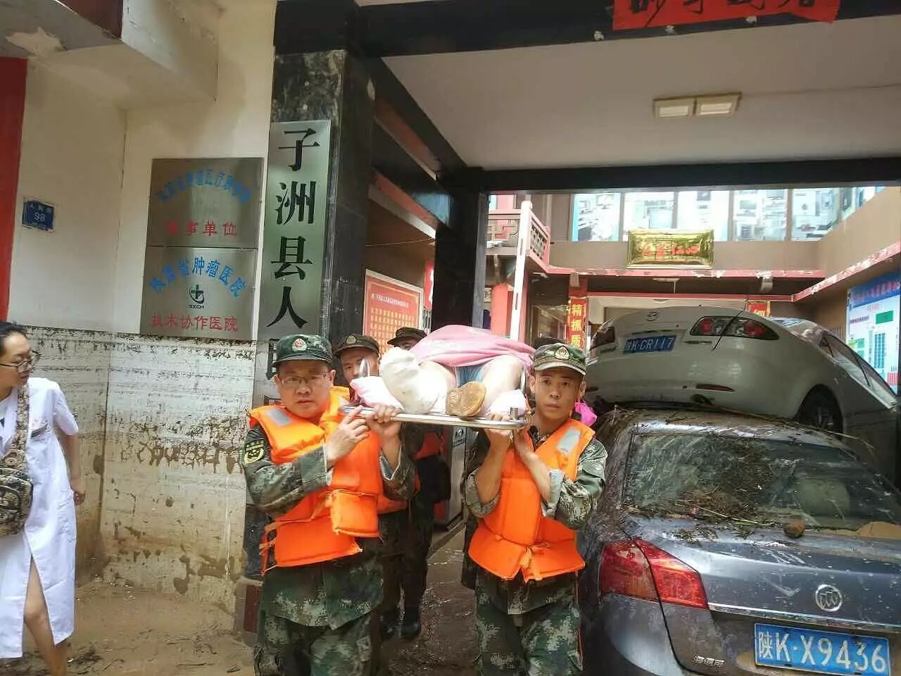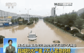 从25日晚到26日早上,子洲县县城降雨量达到203.9mm,周家硷镇达到215mm。截至26日下午3点半,子洲县城区供水、供电和通讯未全部恢复,县城低洼地段积水严重,其中地势最低的子洲县医院,积水最深时达2米。
