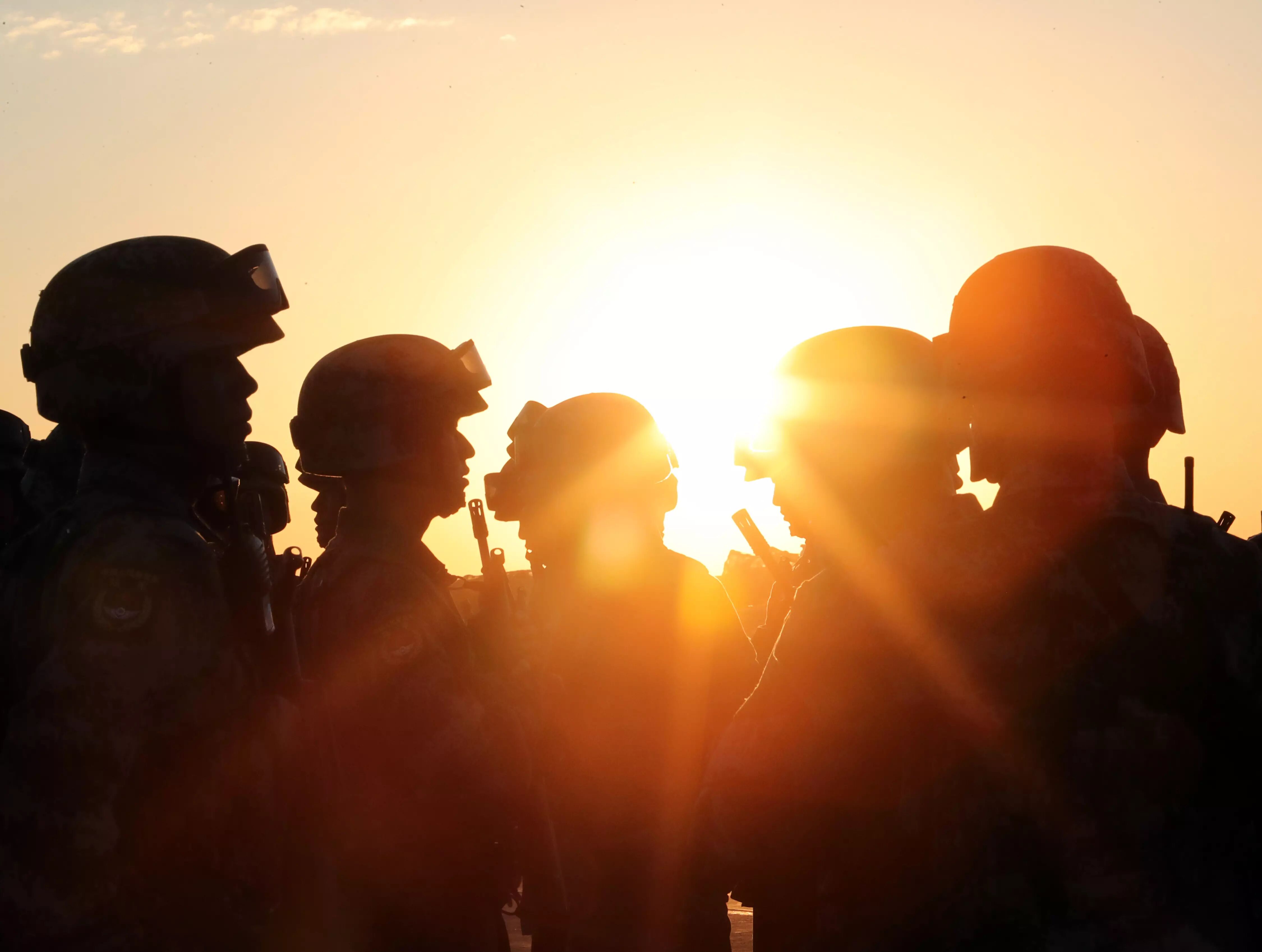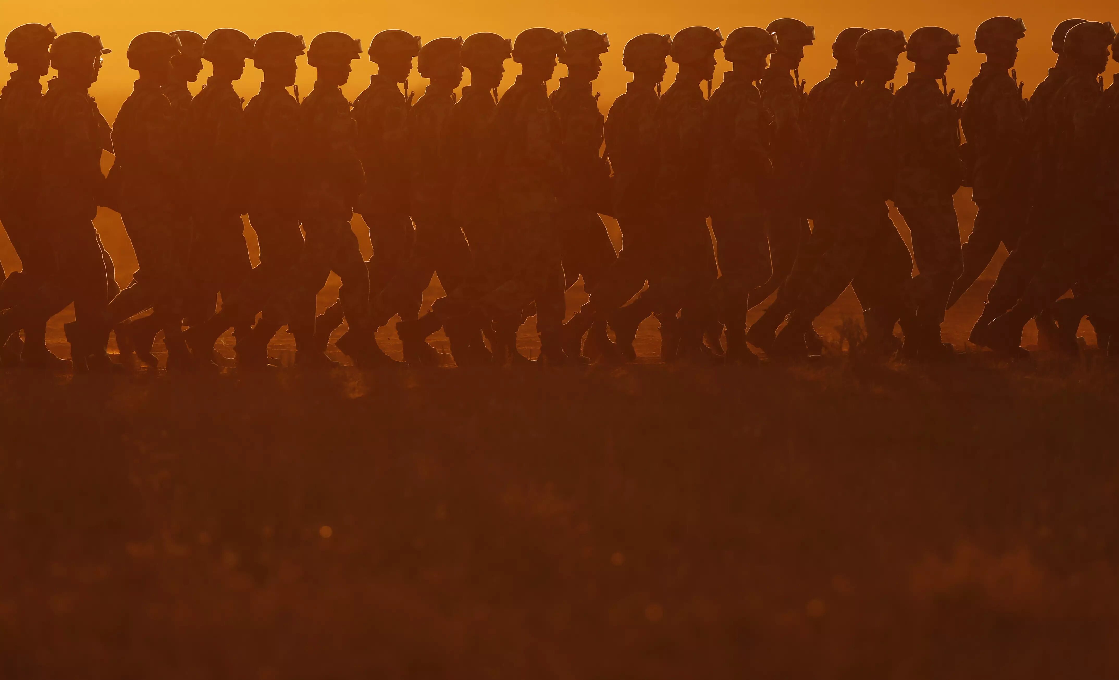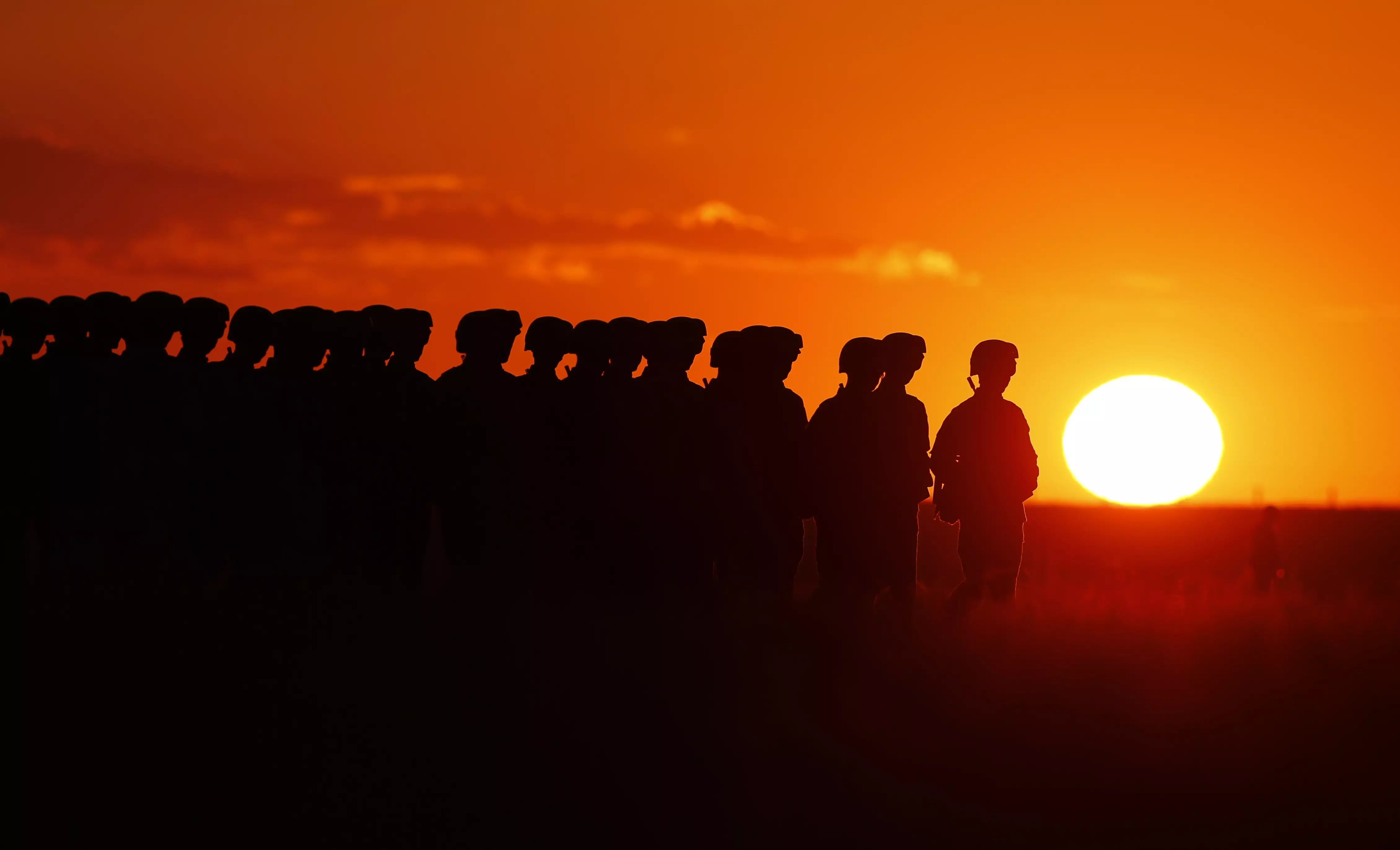 朱日和训练基地晨光普照,草色苍茫的演兵场一望无际。