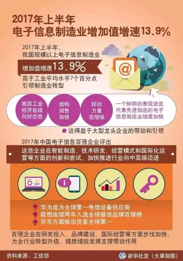 1、工信部:上半年,我国规模以上电子信息制造业增加值增速13.9%,高于工业平均水平7个百分点,引领制造业转型。