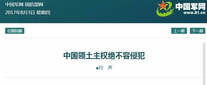 随后,8月3日深夜,中国国防部发表题为“国防部新闻发言人任国强就印度边防部队非法越界进入中国领土发表谈话”的文章称。