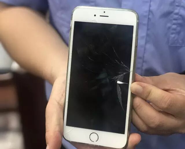 碰瓷嫌疑人使用的事先准备好的破屏手机