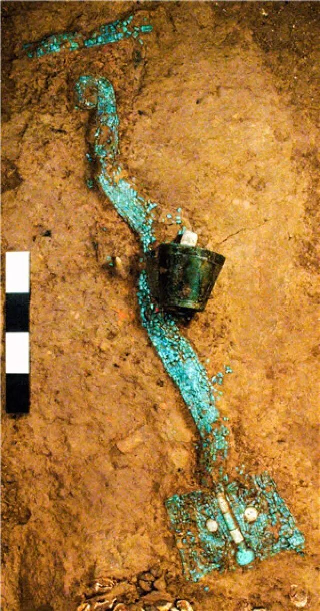 在河南偃师二里头遗址发现的绿松石龙形器(2004年9月27日摄)。新华社发