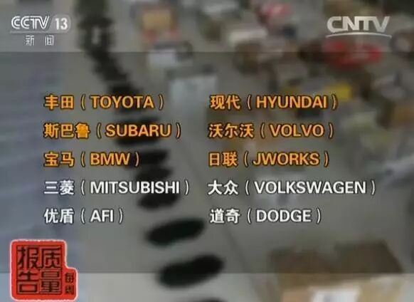 丰田(TOYOTA),路虎(LAND ROVER),MOPAR,双龙(SSANGYONG),大众(VOLKSWAGEN)。