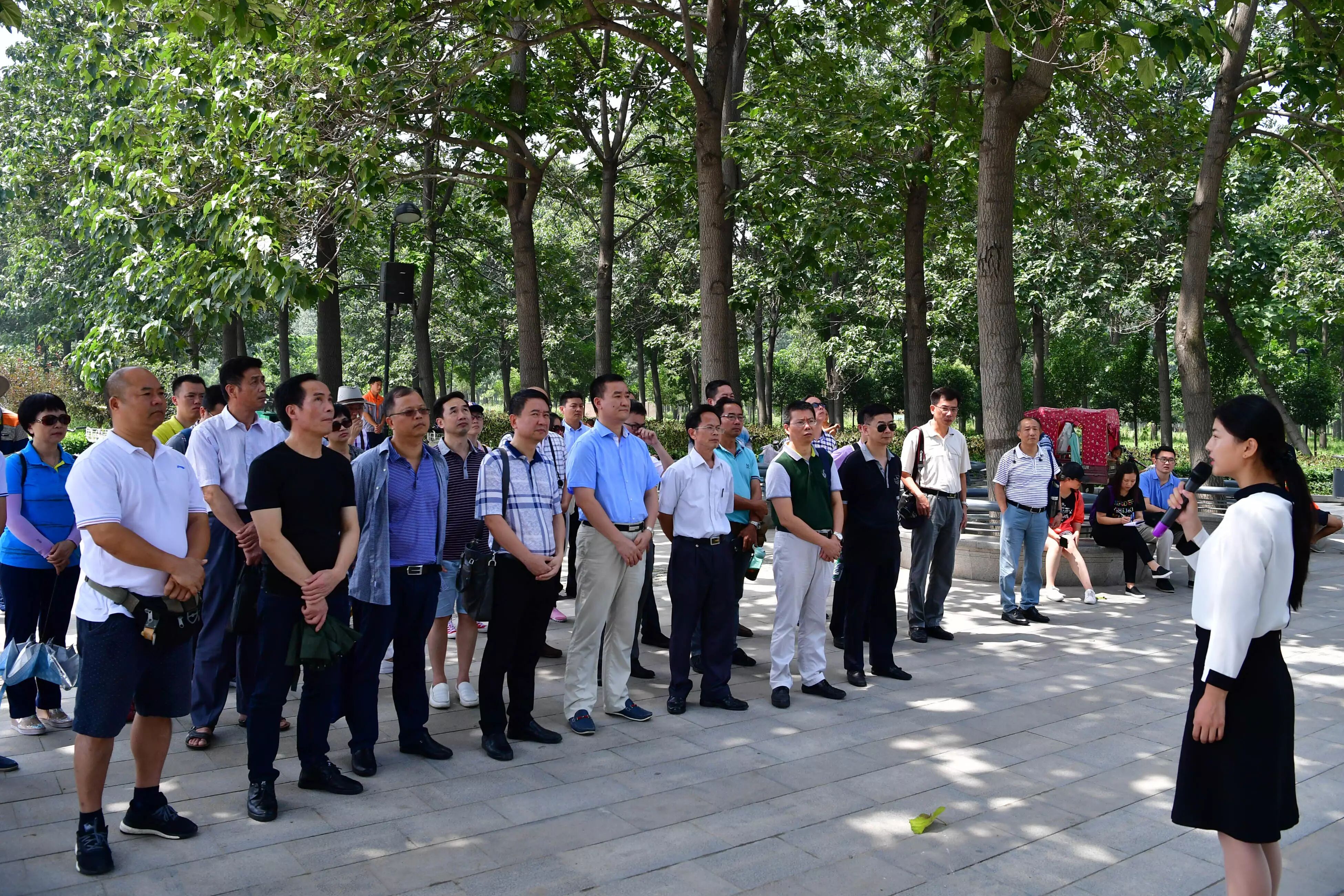 在河南省兰考县焦裕禄干部学院门口的泡桐树下,党员干部在聆听焦桐的故事(8月9日摄)。