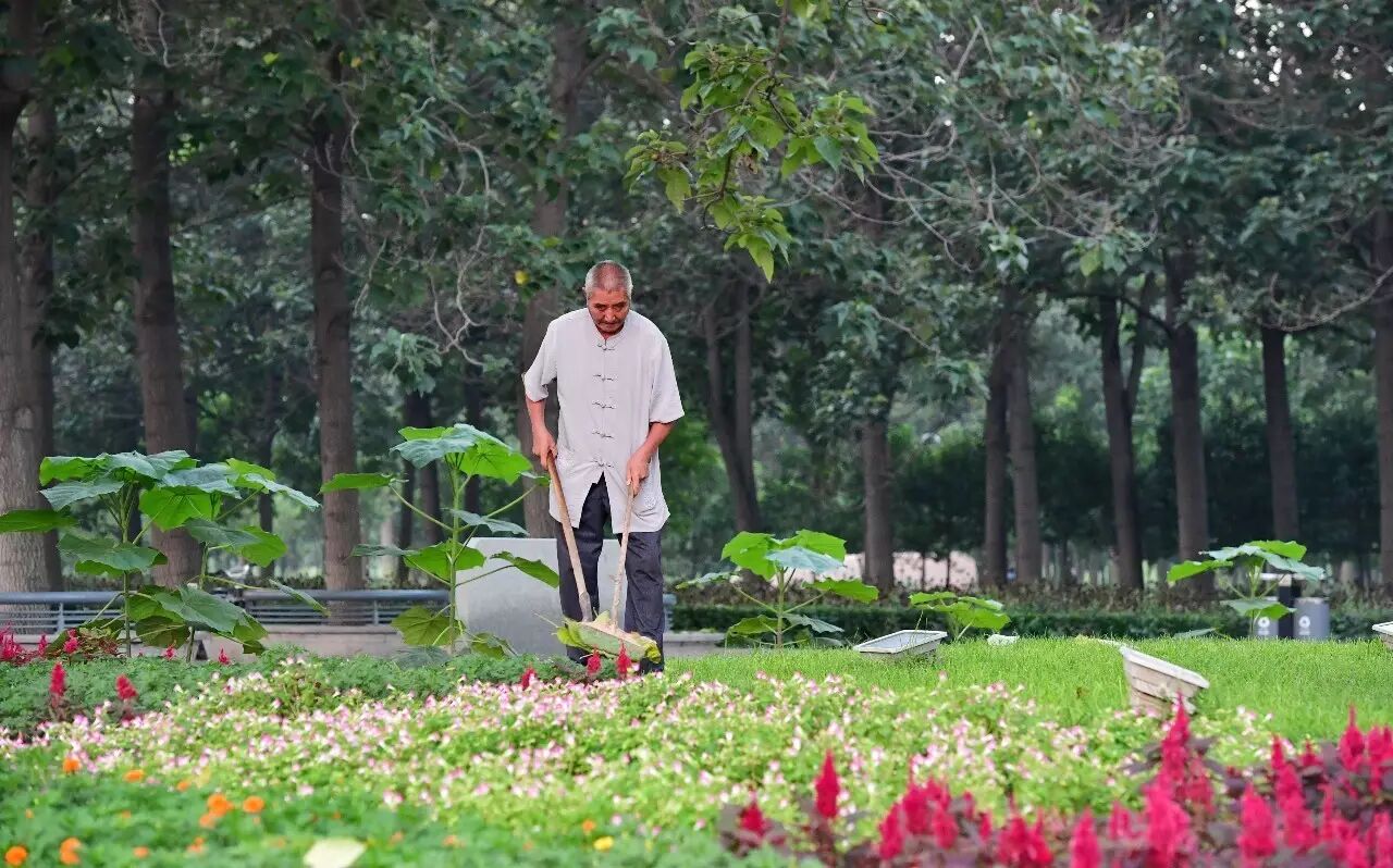 像往常一样,比焦裕禄小整整20岁的魏善民,拿着扫帚,轻轻地清扫,再把落叶归拢,不时抬眼望向他熟悉得不能再熟悉的“这棵树”。