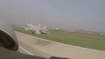 两架战机离开跑道,起飞不到1分钟,袁伟的战机突然遭遇鸟群撞击。