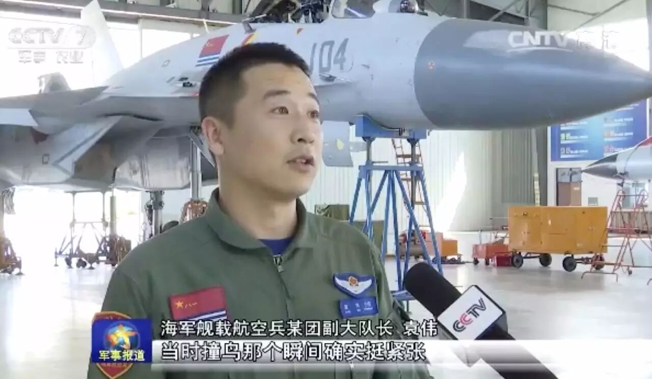 海军舰载航空兵某团副大队长袁伟,在一次飞行训练中与鸟群相撞,左侧发动机起火,在塔台指挥,僚机协助下沉着应对,10分57秒时间挽救战机,创下了战机撞鸟起火、载重超极限着陆、低高度单发迫降成功的航空兵特情处置奇迹。