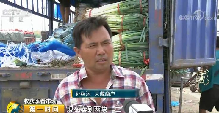 大葱商户 孙秋运:去年这个季节每斤在一块,一块一,现在卖到两块一二,涨了一块钱。
