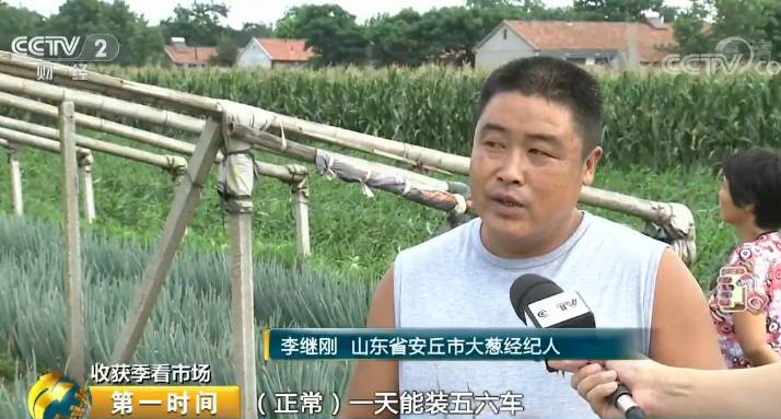 山东省安丘市大葱经纪人 李继刚:正常一天能装五六车,现在也就一天一两车,有时不装。