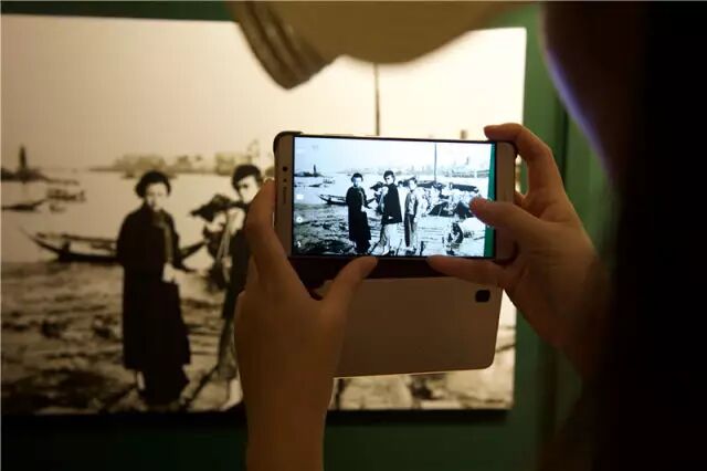 一名游客在鼓浪屿历史文化陈列馆内拍摄鼓浪屿历史照片(6月26日摄)。