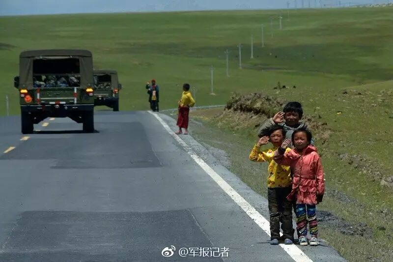 近日,陆军第77集团军某旅在驻训途中,与一群藏族小朋友产生了一段军地情谊。这群淳朴的藏族小朋友,见到军车从远处驶来,他们立即停止玩耍,站得笔直,并送上不太标准的“军礼”,目送军车驶过。