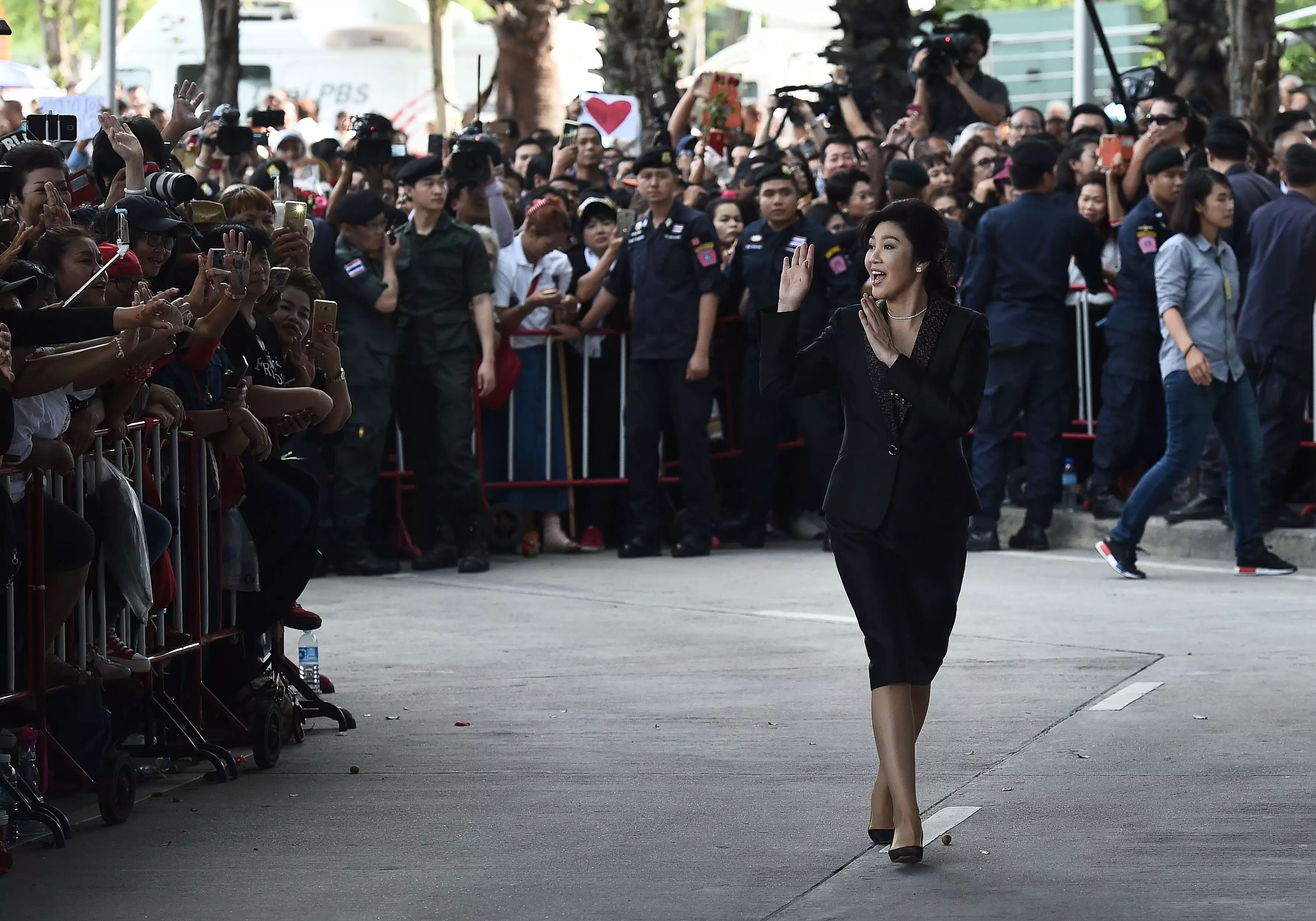 8月1日,英拉抵达泰国最高法院时向支持者致意