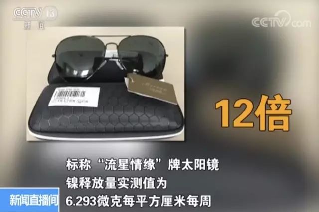 标称“流星情缘”牌太阳镜实测值为6.293微克每平方厘米每周,是参考限值的12倍。