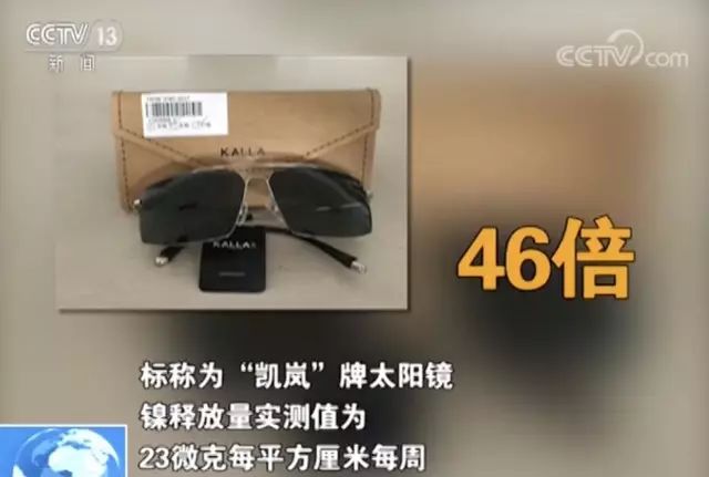 结果经过检测,25组金属镜架样品中,有13组样品的镍释放量实测值都高于0.5微克每平方厘米每周,其中标称为“凯岚”牌太阳镜镍释放量实测值最高,为23微克每平方厘米每周,是参考限值的46倍;
