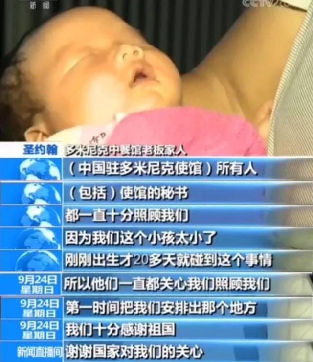 在这批撤离的人员中,还有一名刚出生20多天的婴儿,他的父母是当地一家中餐馆的老板,面对如此小的孩子,孩子的母亲一度十分担心。