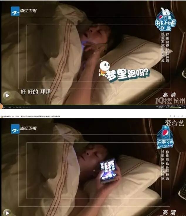 在2015年10月3日播出的《挑战者联盟》也被网友扒出了穿帮镜头。节目里陈汉典被电话吵醒,可是……