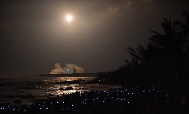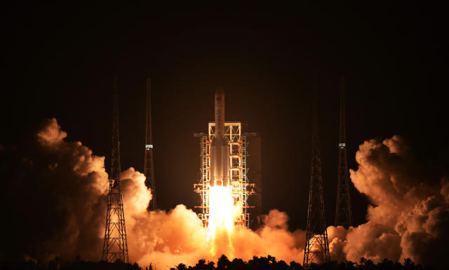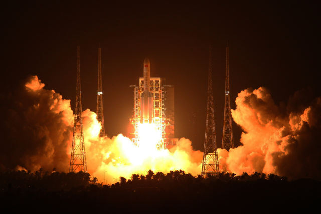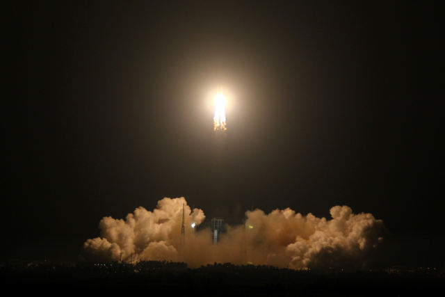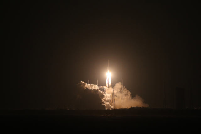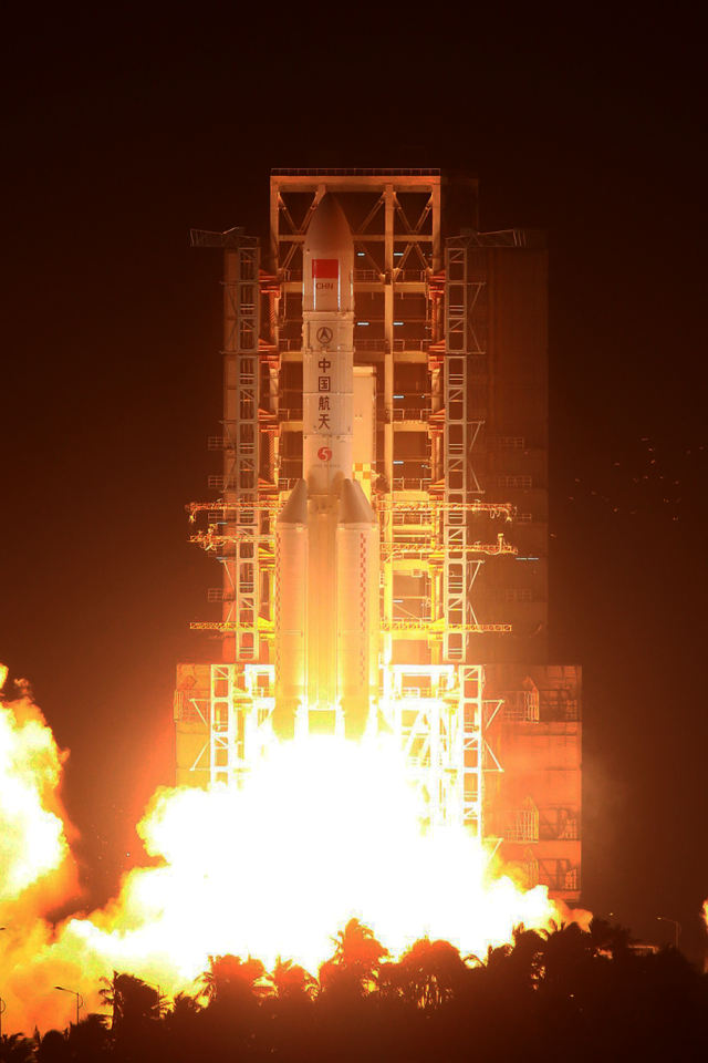 11月3日20时43分,长征五号在中国文昌航天发射场点火升空。