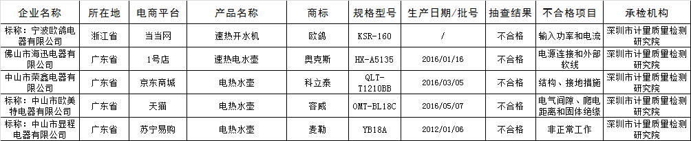 电水壶不合格产品名单