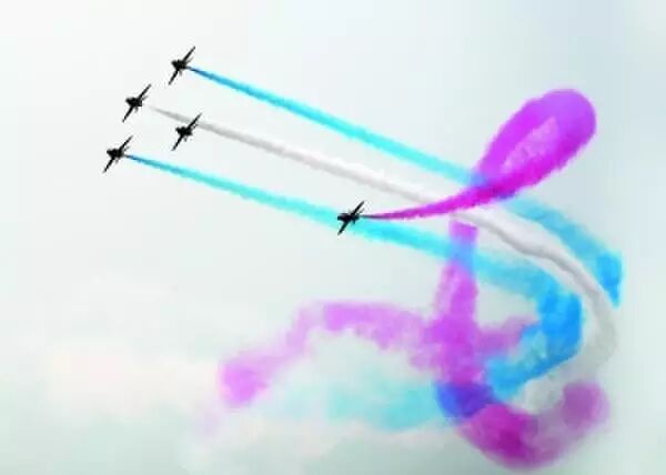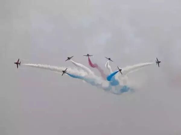 △ 英国皇家空军“红箭”飞行表演队的现场表演。