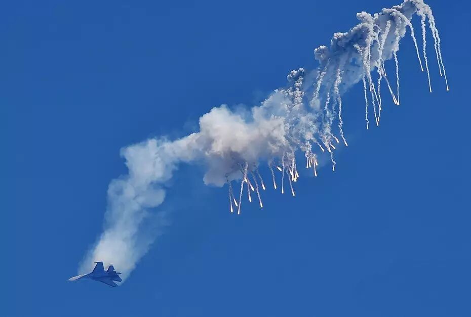 △ 俄罗斯“勇士”表演队的苏27表演著名的“眼镜蛇动作”。