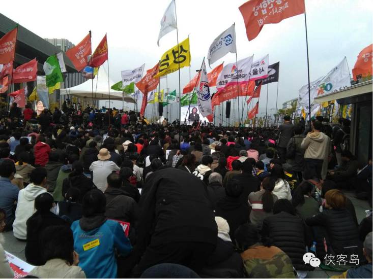 岛妹今天还特意跑韩国首尔光华门拜观了这场声势浩大的示威游行,还跟维持秩序的警察搭了个讪。警察都在吐槽朴总统,搞不懂朴总统怎么能做到让人人都讨厌她。而现场的示威群众都纷纷表示,一定要将示威进行到底,知道朴总统下台。
