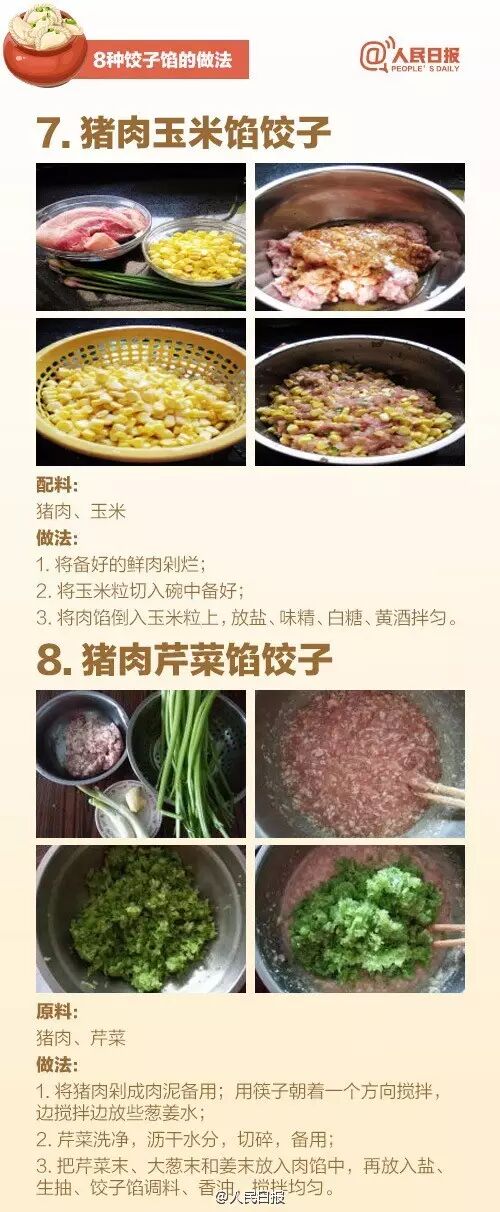 今天别忘吃饺子!8种饺子馅做法,哪种是你的最爱? 2016-11-07 17:19 0 民间把立冬作为冬季的开始。很多地方都一定要来盘饺子。饺子源于“交子之时”,立冬是秋冬之交,所以要吃饺子。 常言道,“好吃不过饺子”,芹菜、茴香、韭菜、猪肉、牛肉、三鲜……哪一种是你的最爱?超全的饺子包法+馅料调配秘方,收藏学习!