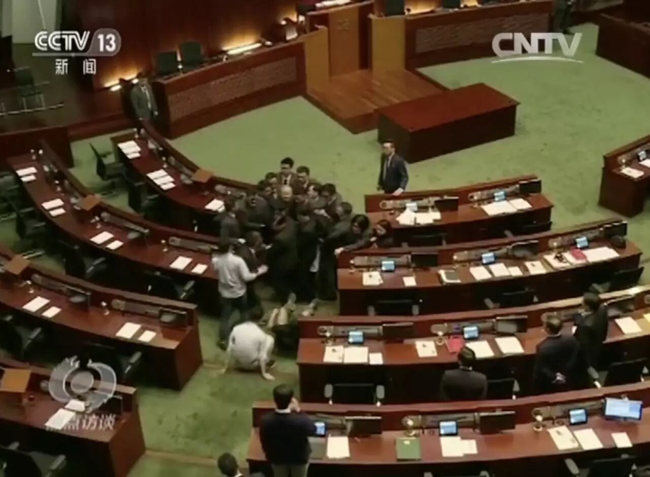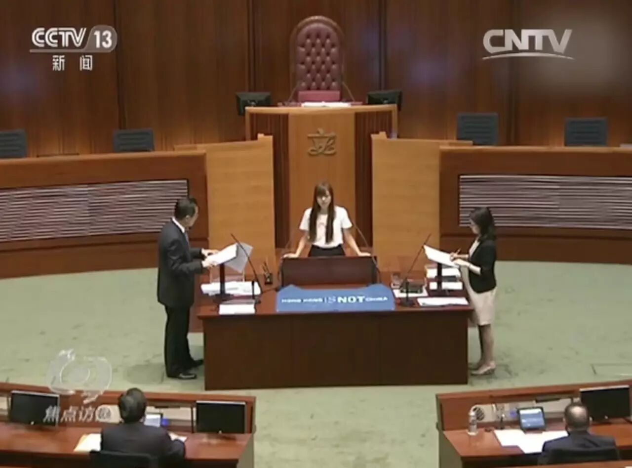 香港立法会少数当选议员宣誓时上演闹剧 宣誓被当场判定无效