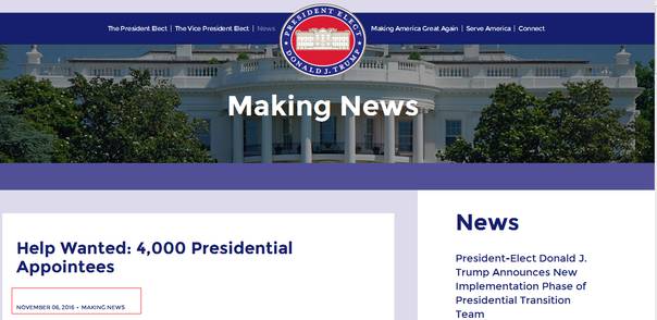 11月6日,特朗普就在自己的官网上贴出招聘启事
