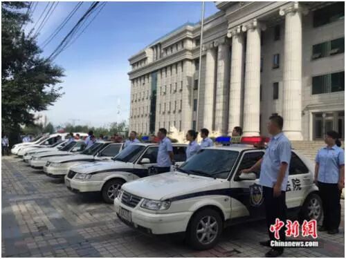 资料图:长春市绿园区人民法院门外,执法人员已集结完毕。杨雨奇 摄
