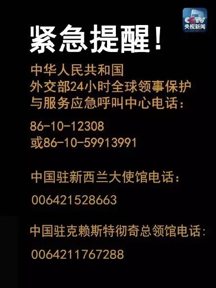 此外,中国驻当地使领馆将继续关注当地中国公民安全,与新西兰政府保持沟通,在需要时为中国公民提供及时的领事保护和救助。