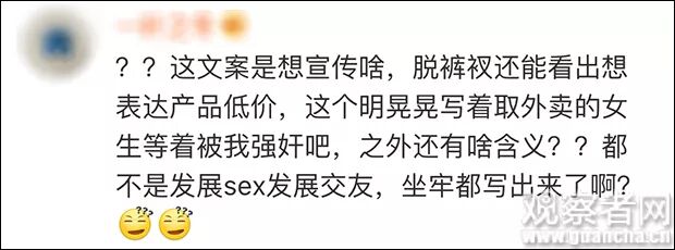 这个文案除了“明晃晃写着‘取外卖的女生等着被我强奸吧’之外还有啥含义?”