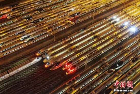 资料图:停靠在南京南动车所存车线上的列车。中新社记者 泱波 摄