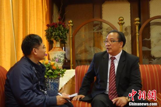 华人开办中餐馆,既是谋生致富之道,也为当地人提供了工作岗位,深受当地政府和民众称赞。图为秘鲁中华餐饮业协会会长罗兆雄(右)接受中新社记者采访。