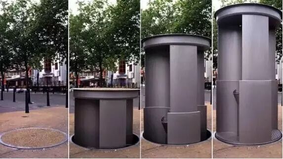 更让人叫绝的是,他们还发明出了神器,白天这个厕所的所在地就是个井盖一样并无异常,到了晚上,井盖地下的厕所就缓缓升起,让那些街头醉酒的男孩们有个地方解决自己的问题。黑科技有木有啊!