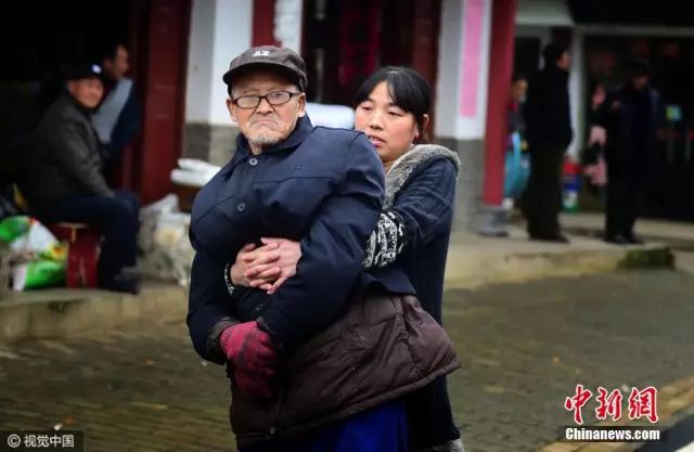 短短300米的距离,陆勤霞要带着父亲走一个多小时。每天,她要带着父亲走三回,只因瘫痪的父亲喜欢出来溜达。
