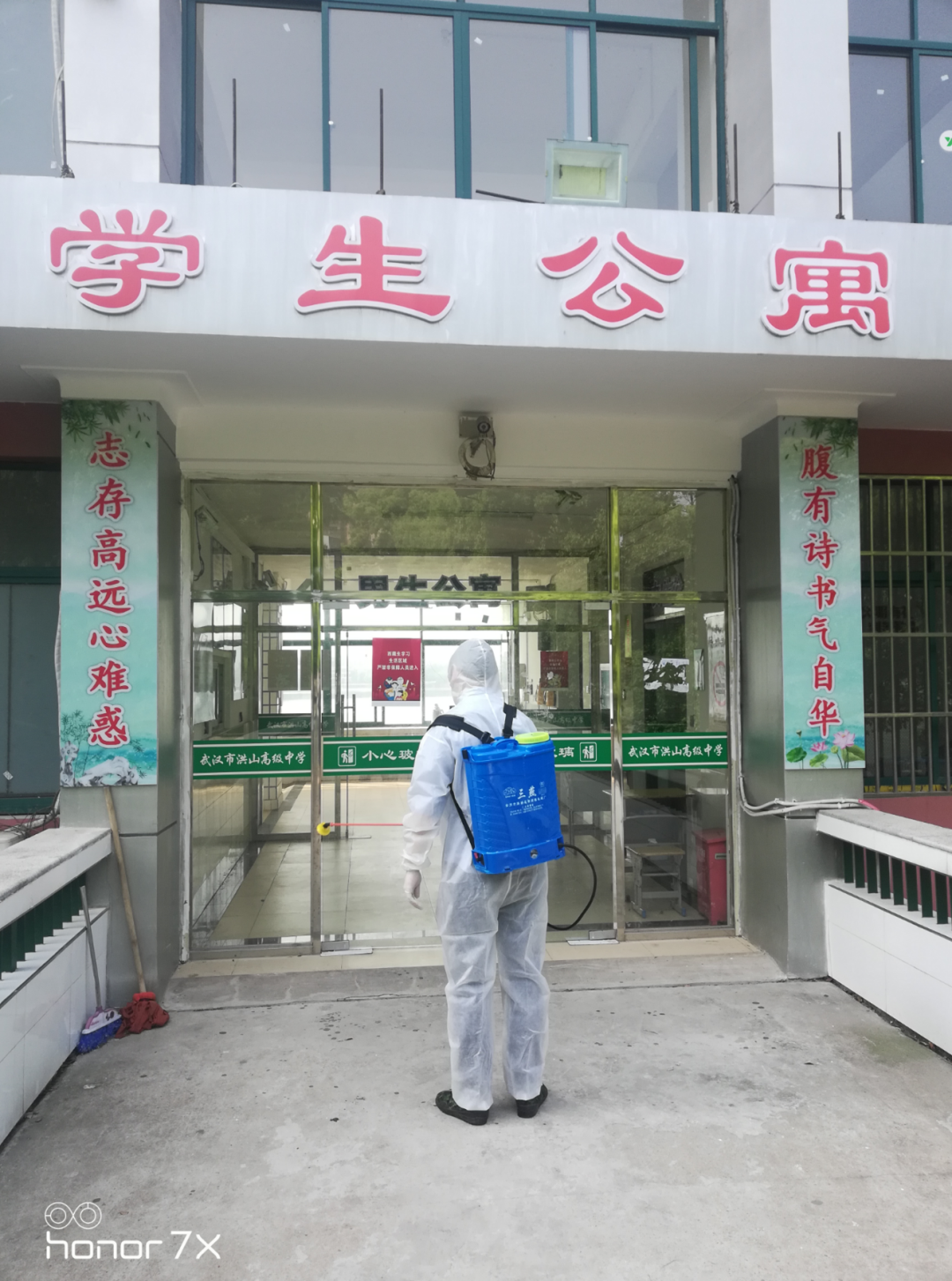 ▲洪山高中对校园全面消杀