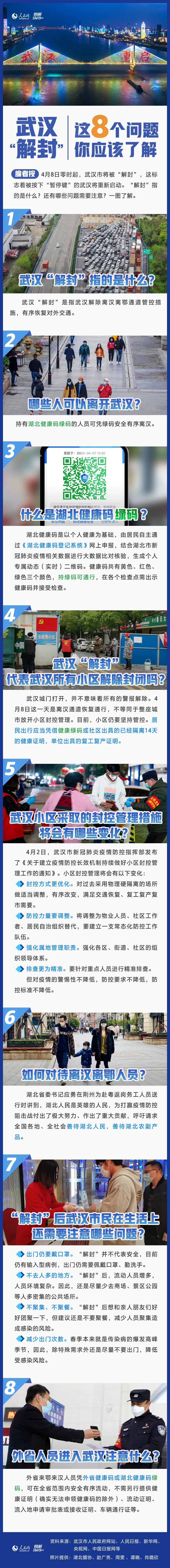 4月8日零时起,武汉市解除离汉离鄂通道管控措施。根据湖北省、武汉市最新疫情防控工作要求和部署,武汉轨道交通8号线一期将于4月8日恢复运营。