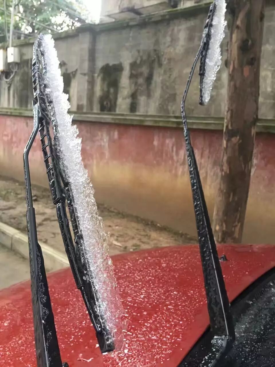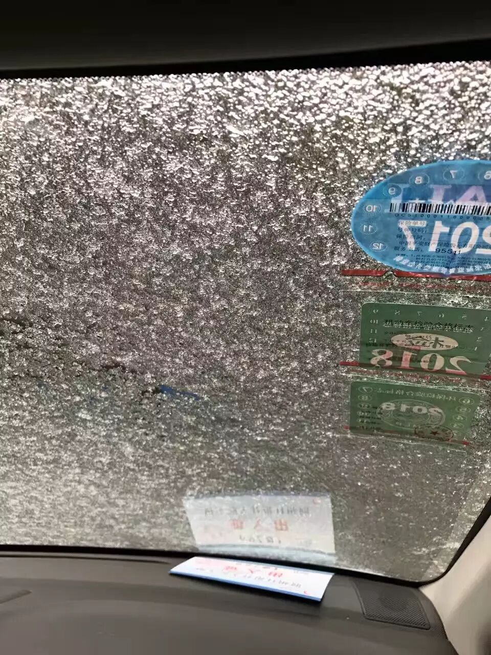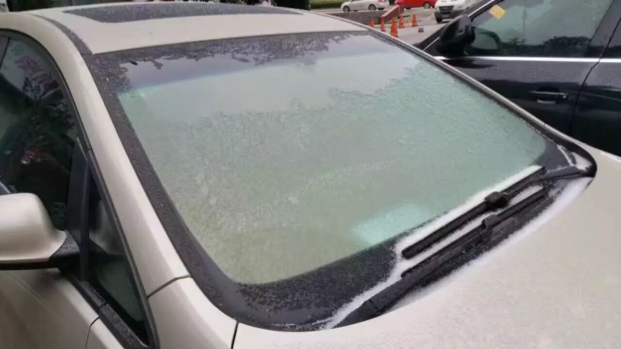 车窗结冰了,各位不要用热水泼,冷车多预热几分钟,然后利用热气除冰,如果泼热水,可能热胀冷缩玻璃会破,或者泼冷水,然后用卡片刮掉,不要使用雨刷。