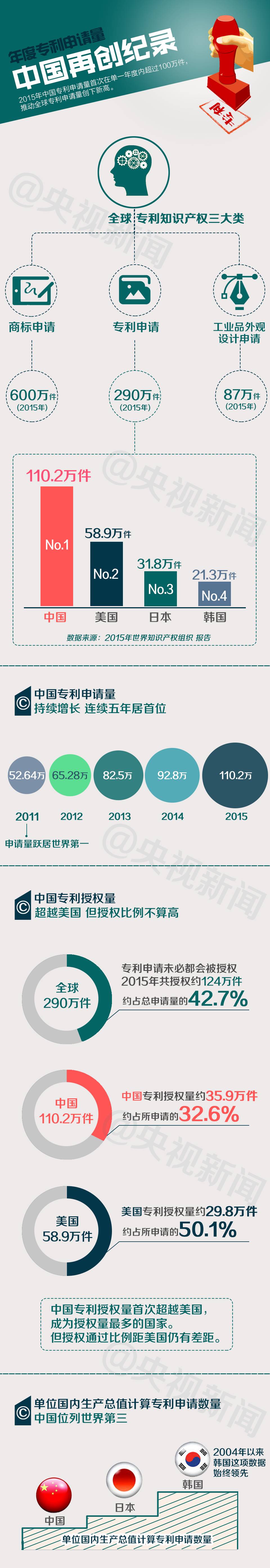 新华社《2015年中国专利申请量超百万件助全球总量创新高》