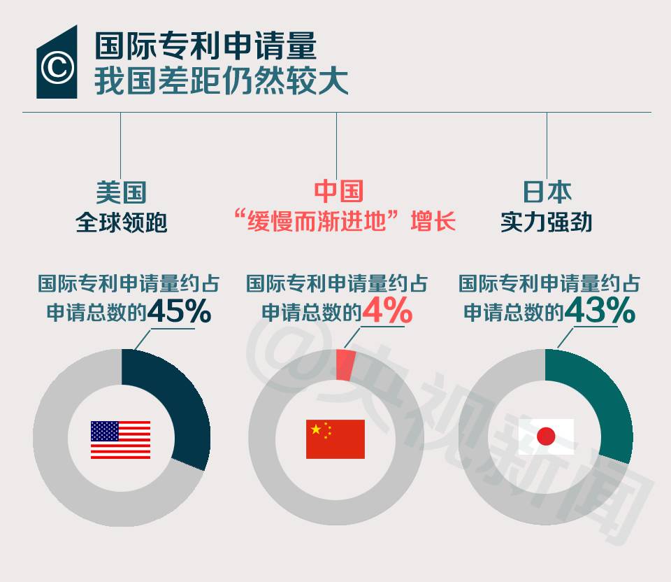 尽管我国专利申请量已连续五年全球第一,但是我国在海外的专利申请数却较为“惨淡”,与美日相比差距明显。
