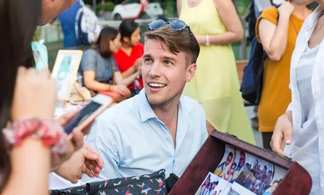 看到一个外国人摆地摊,一定会好奇,那么只要你能停下10秒钟,我就可以分享我们的故事。当然,我也经常会被城管赶走。