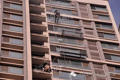 背着绳索,他们像蜘蛛侠一样,一脚一脚,他们从楼顶跳到了28楼。从外面砸破玻璃,他们冲进屋里,抱起无助的被困人员,爬出窗外,又一脚一脚,跳到安全地楼层楼,将怀里的人放到安全的阳台上,然后又抓着绳子,一脚一脚的上去。或许,这个时候,他们就是被困群众心目中真正的“蜘蛛侠”。