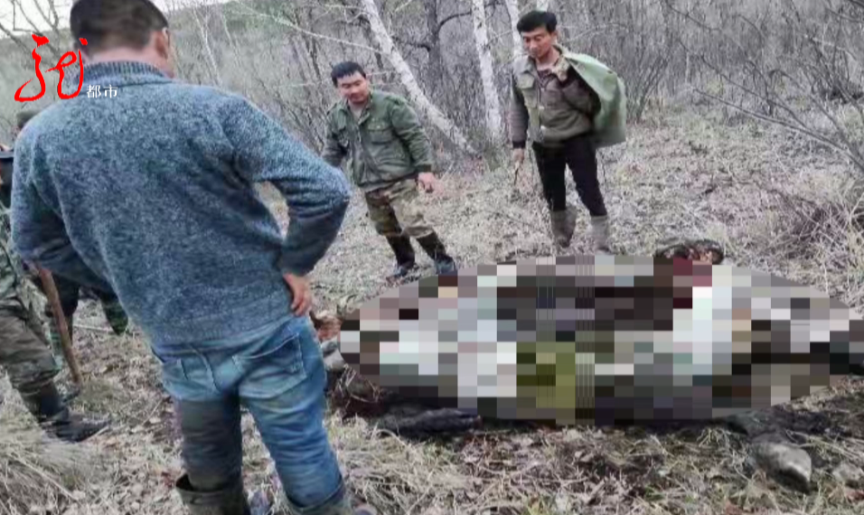 大兴安岭边境管理支队呼玛大队金山边境派出所接到求助电话后,民警和十多名年轻力壮并且有经验的村民,携带斧头等工具和张新勇一起进山寻找这头牛,走了二十多分钟的山路,最后在山顶北坡找到了死去的母牛。