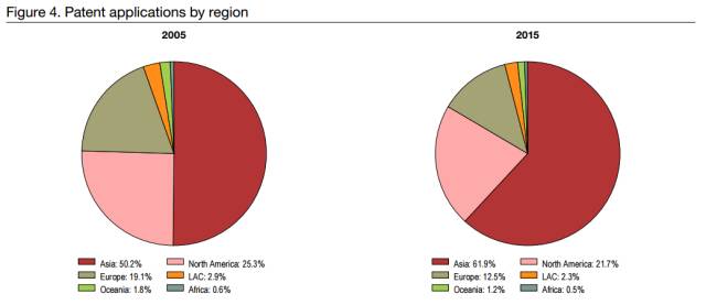 “我们再一次看到亚洲日益成为知识产权申请活动的主要起源。”高锐补充说。他指出,亚洲国家去年承担了全球60%以上的专利申请。