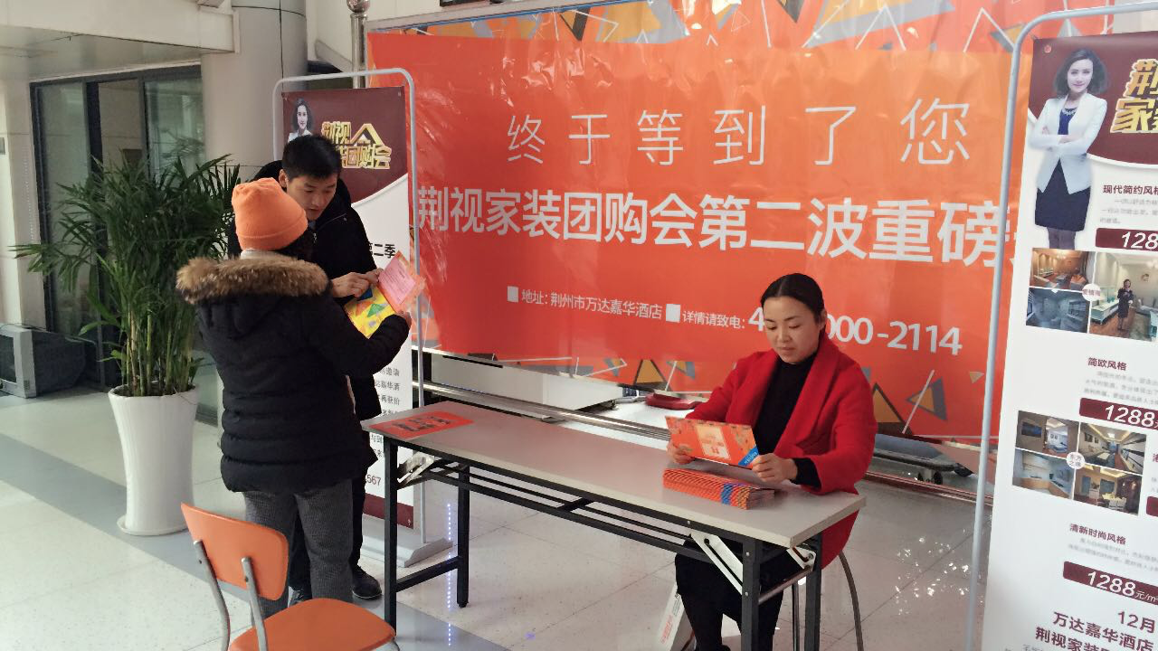在荆州电视台一楼大厅,记者见到了正在办理“荆视家装团购会”入场券的业主黄女士。她告诉记者,自己第一场活动时就关注了“荆视家装团购会”,结果没抢到名额,所以这一次她早早的就办好了入场券。今年9月17日,“荆视家装团购会”第一场活动正式启动,400多名业主成功签单,装修工程正在有条不紊的进行中。但不少市民都和黄勇菲一样,没赶上这场活动。所以,主办方决定在12月,推出“荆视家装团购会”的第二场活动, 活动优惠力度丝毫不亚于第一场活动。